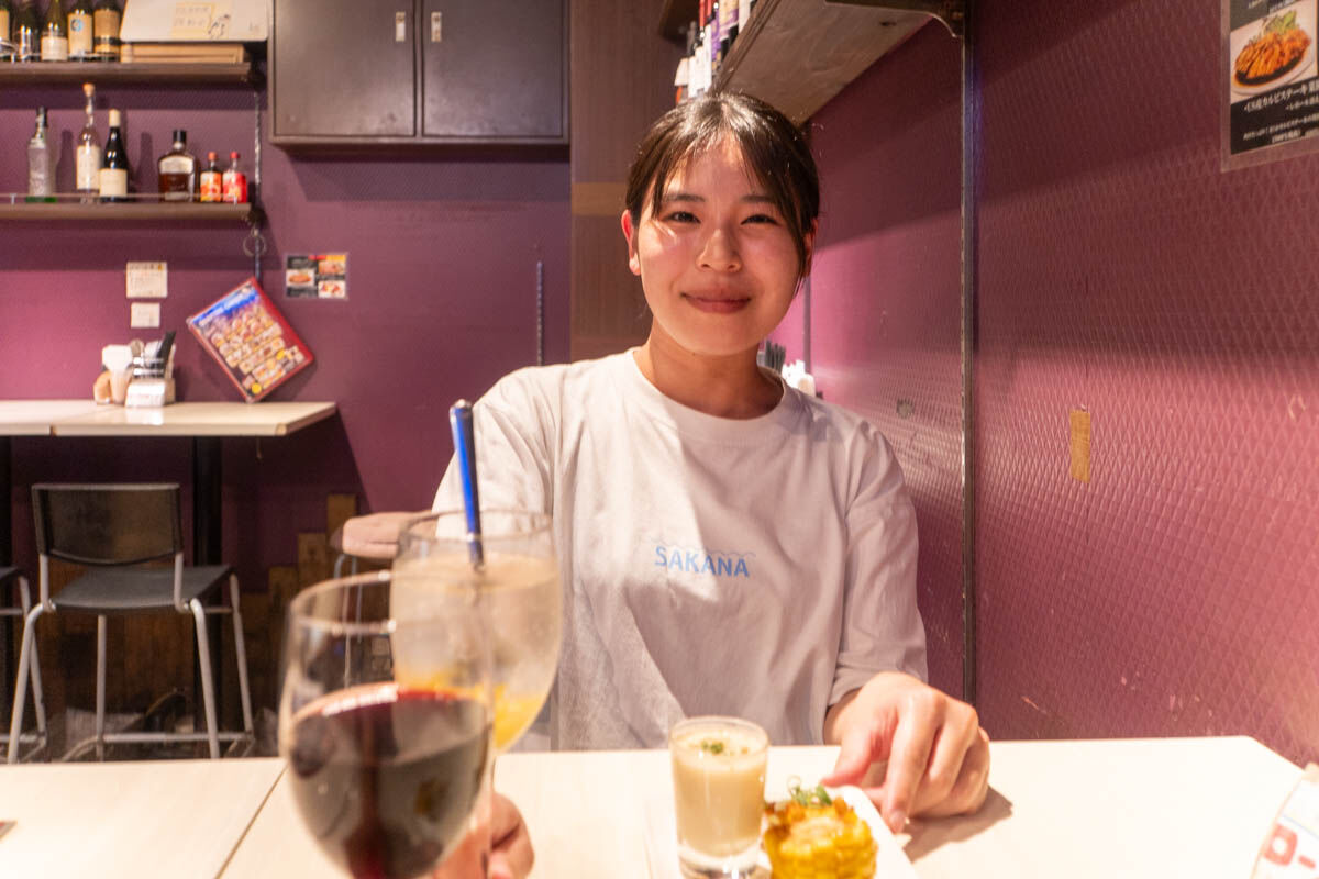 夜早い時間帯は、夜ご飯を食べに来るお一人様のお客さんが多く、夜遅くにかけて飲みに来るグループのお客さんが多いイメージでした。