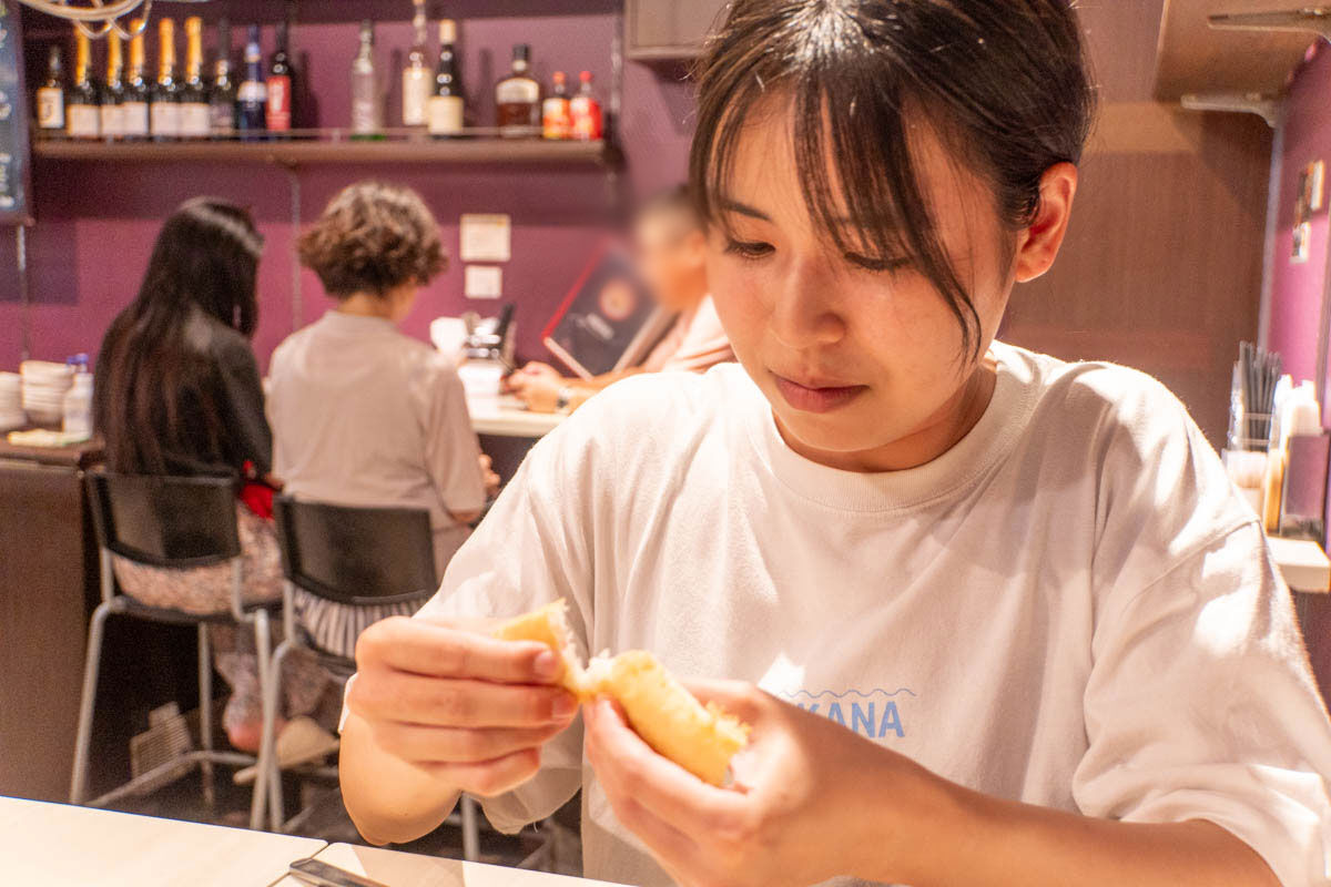 「砂肝はプリップリでこの歯ごたえがたまらない!バケットもいっぱい入ってて嬉しいですね!」