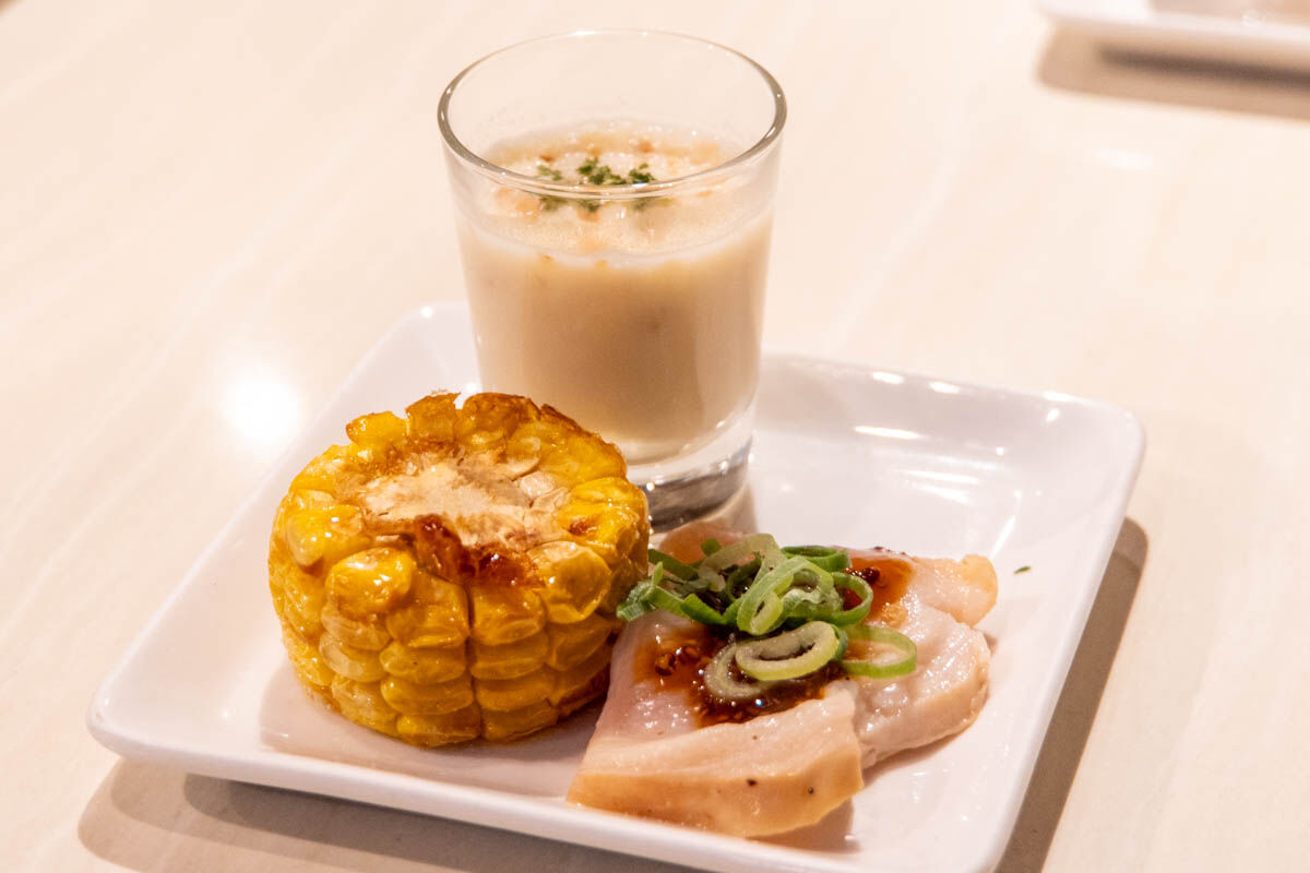 「鶏ハムに焼きトウモロコシに冷製ポタージュ…!」