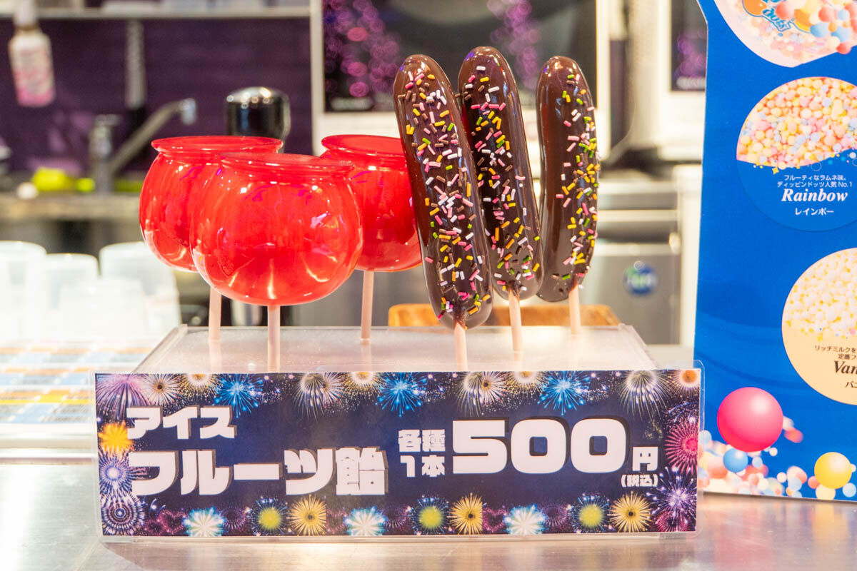 さらに夏らしくアイスフルーツ飴(りんご)とチョコバナナ、パイン棒も!!