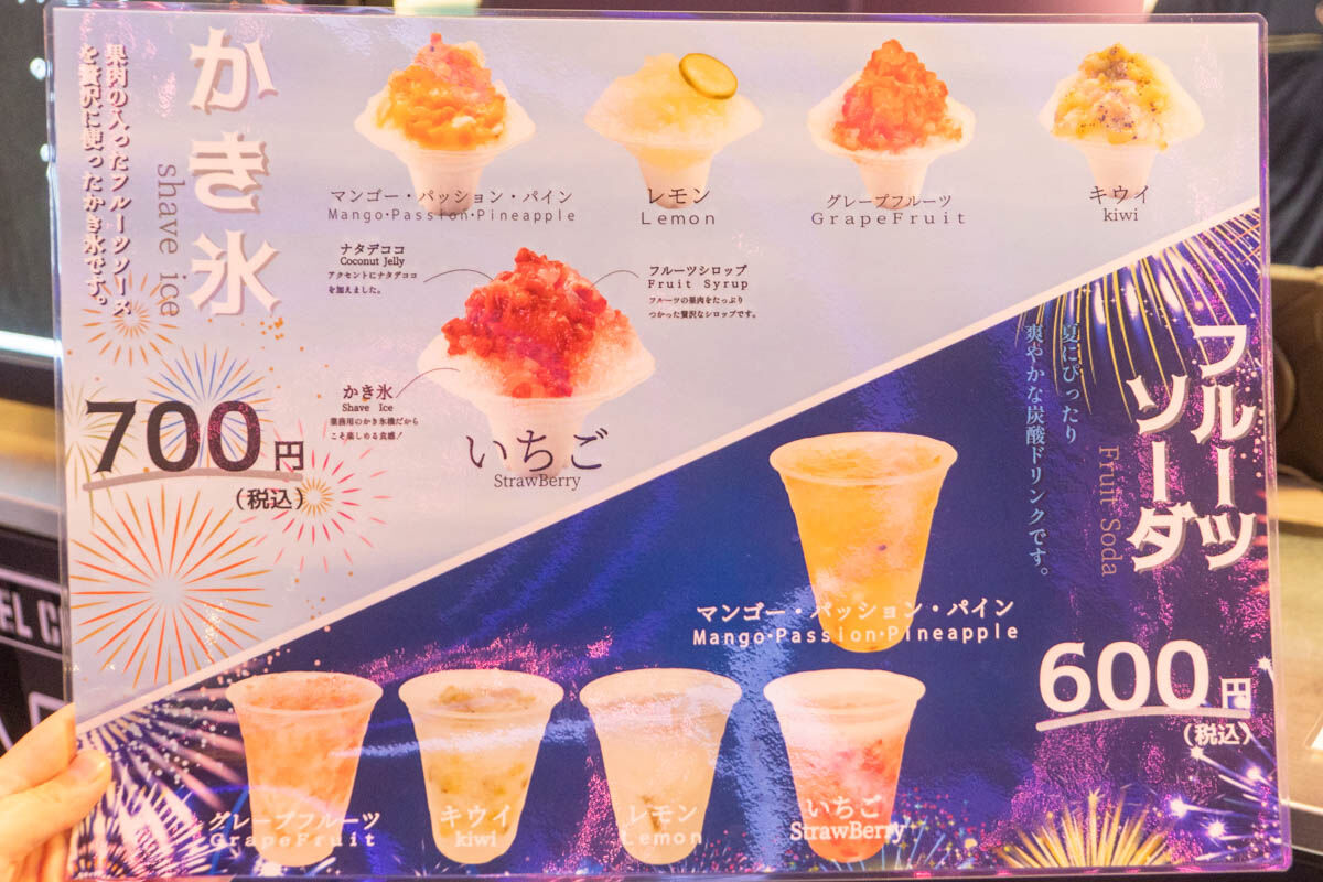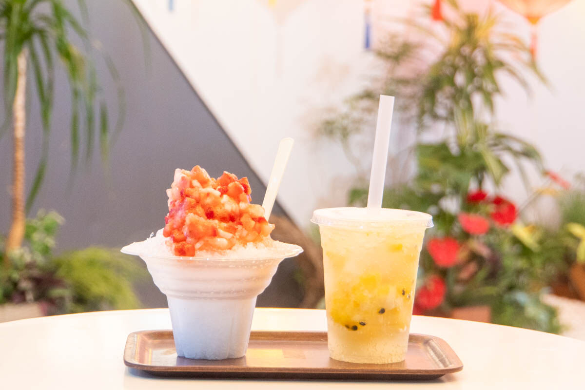 今回私たちが注文したのは、「いちごのかき氷」と「マンゴー・パッション・パインのフルーツソーダ」