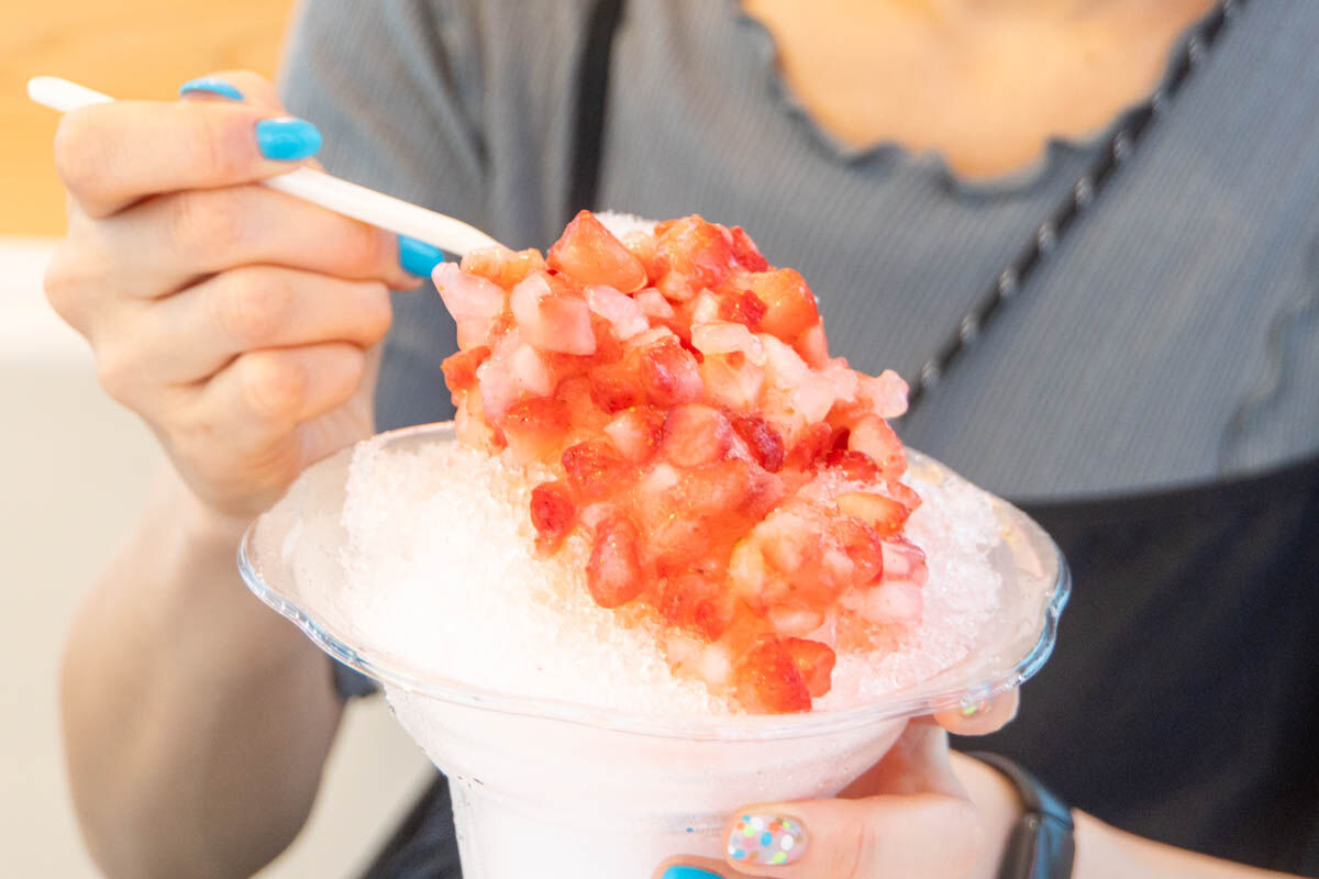 「いちごがたっぷり!ナタデココも入っているので食感が楽しい!かき氷は氷のザクザク感もあって夏を感じますね〜!」