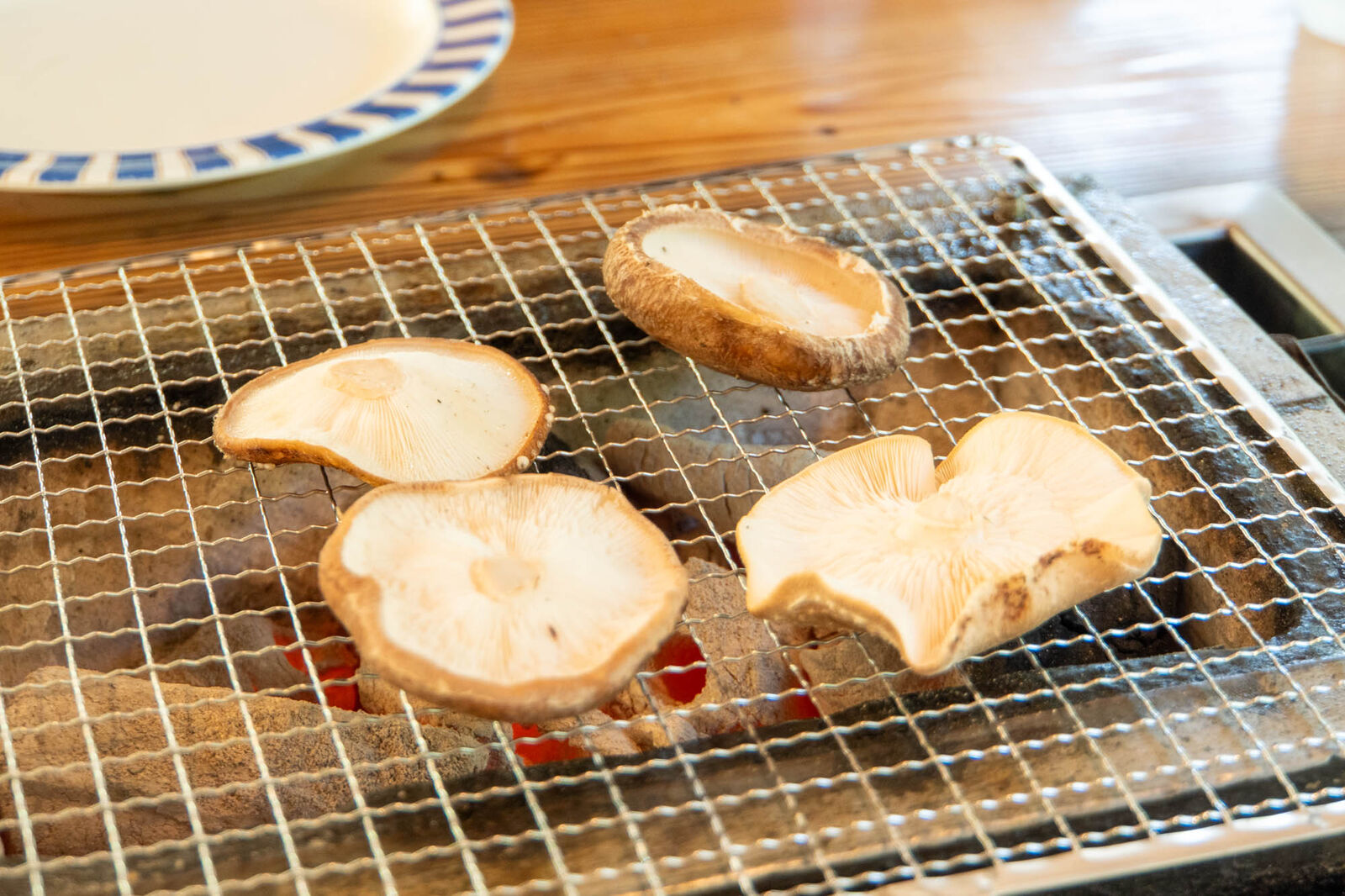 しいたけを採ったあとは、お隣の建物でさっそくBBQ!
