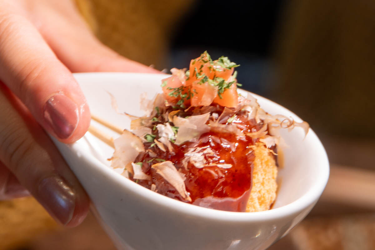 揚げたたこ焼きが登場してきてびっくり。面白くて、味も外サクッ、中トロッで美味しかったです!