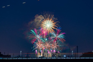 - 安威川ダムから見えた「EXPO Thanks 花火大会」の花火。最終日
