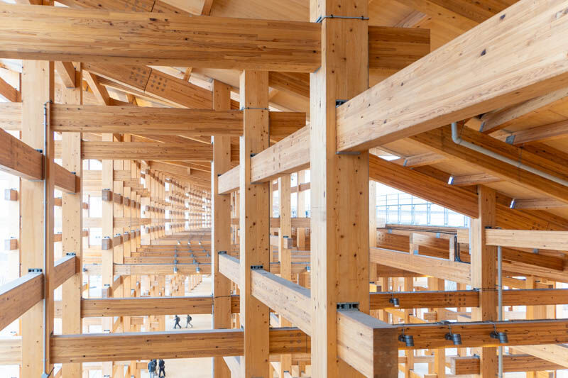 「大屋根リング」は、日本の神社仏閣などの建築に使用されてきた貫(ぬき)接合に現代の工法を加えて建築されたんだそう。