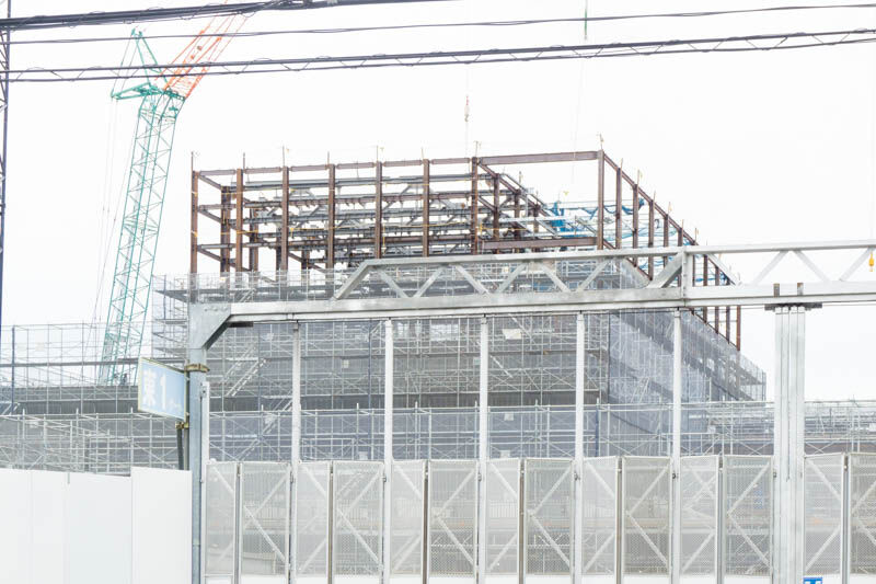 野見町につくってる芸術文化劇場の建物の骨組みがかなりできてきてる