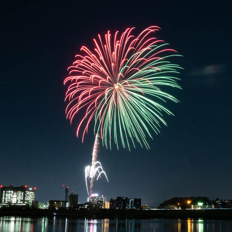 普通の花火大会とくらべて、1発1発の間がすごいゆとりある花火でした。