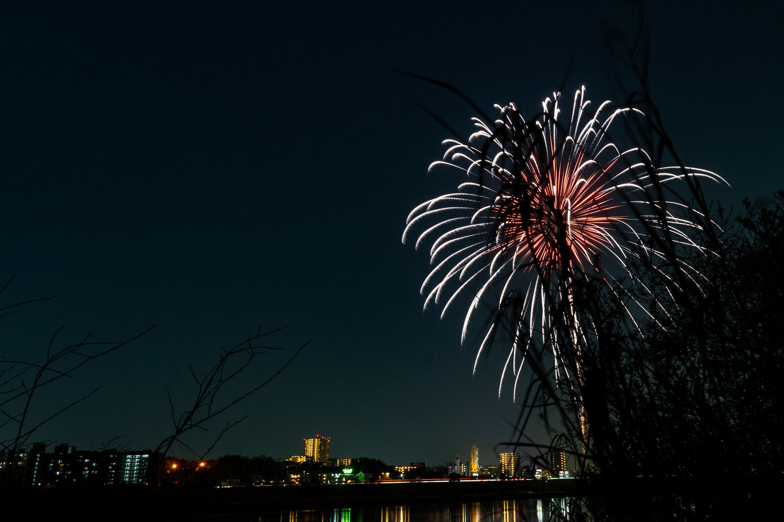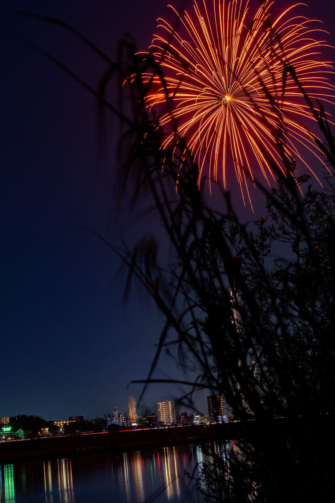水面だけ赤い花火。
