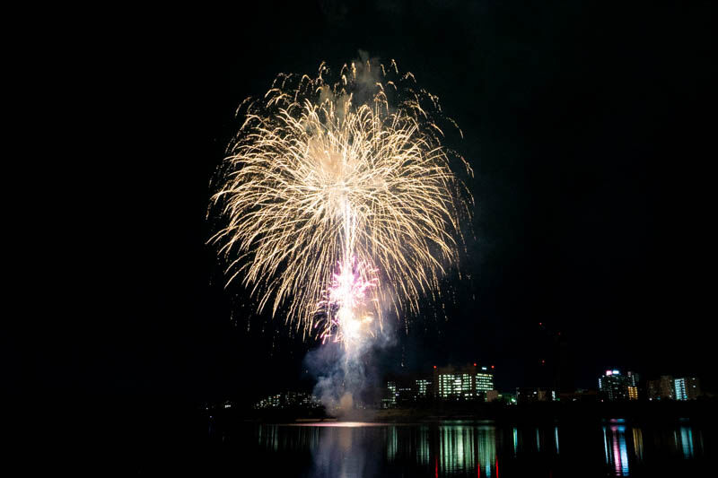 川面に映る花火を撮るつもりでしたが、あたふたしているうちに叶わず!