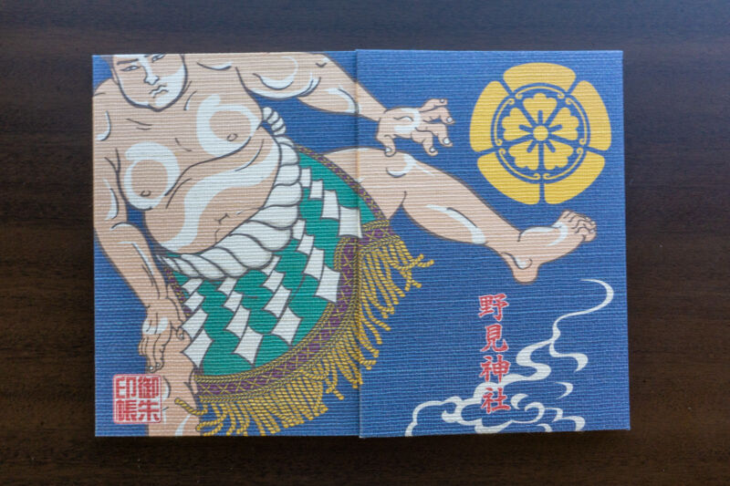 どうしてお相撲さん柄なのかと思い野見神社の公式サイトを調べたところ、野見神社に祀られている神様「野見宿禰(のみのすくね)」が日本で初めて相撲をとったことが由来しているようです↓