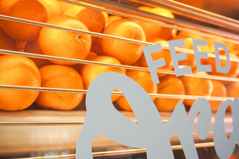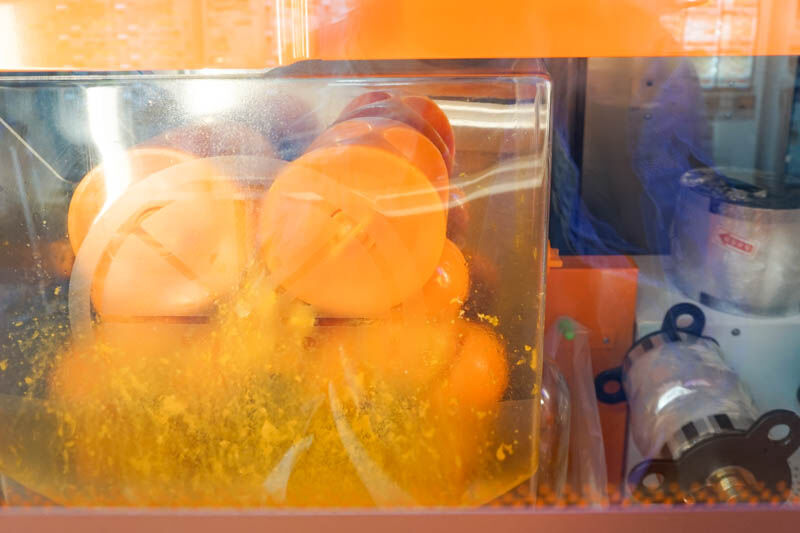 こちらの自販機は「Feed ME Orange」という生搾りオレンジジュースマシーンで、1杯に3~4個の生のオレンジを使用するそう。