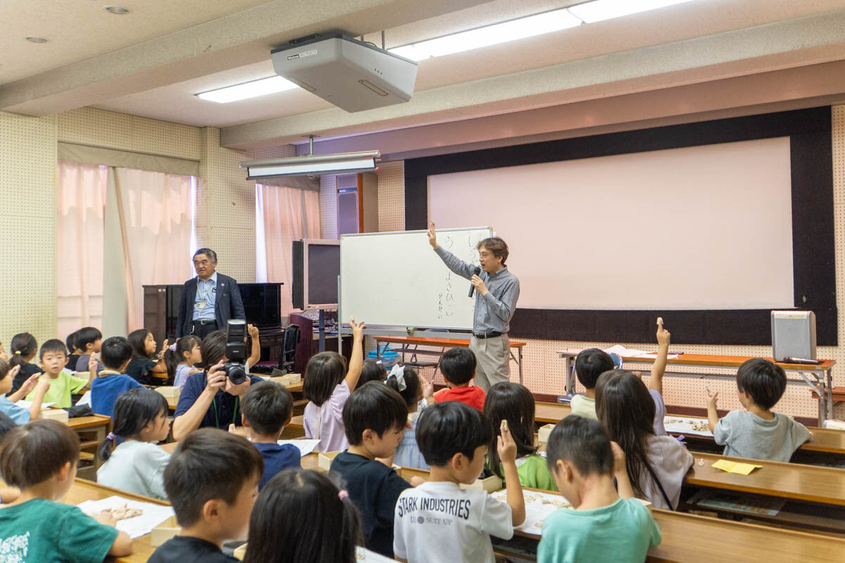 阿武野小で浦野真彦八段が将棋の出前授業。子どもたちも興味津々!