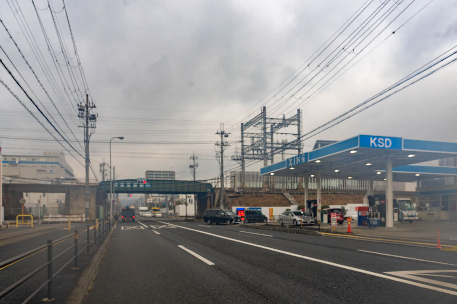 向かいには高槻郵便局、大阪方面にいくとすぐ阪急の線路の下をくぐって東レフィルムとサンスターがあります。
