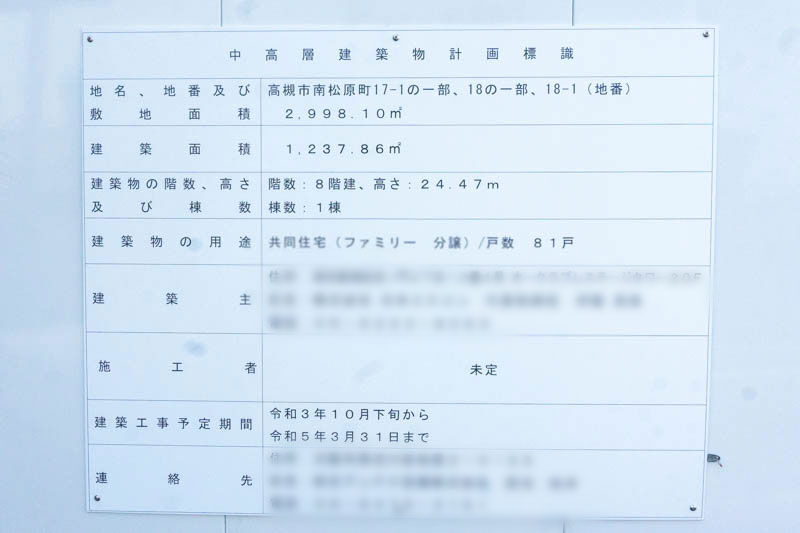 高槻市の条例協議申出調書によると、地上8階建て総戸数81戸のマンションができるようです。
