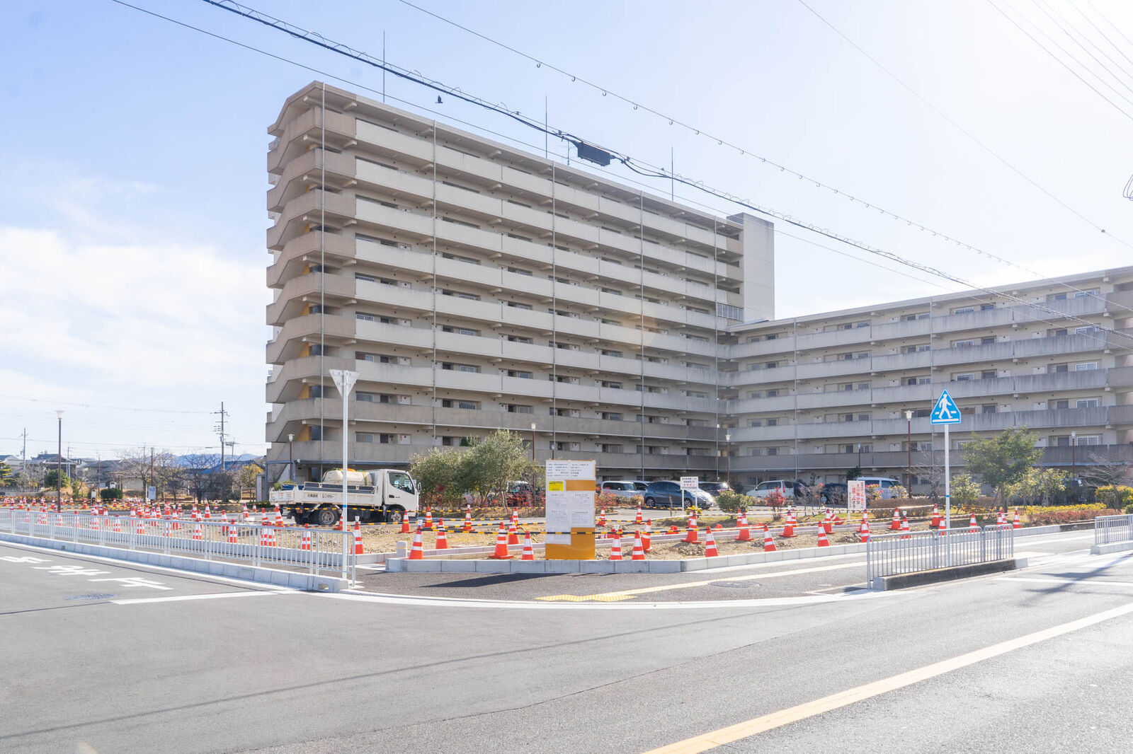 左側と、道路挟んで向かいの右側にも写っていませんが新しい公園があります。こっちにいくとバス停の終点の1つ「北大塚」の方へ。