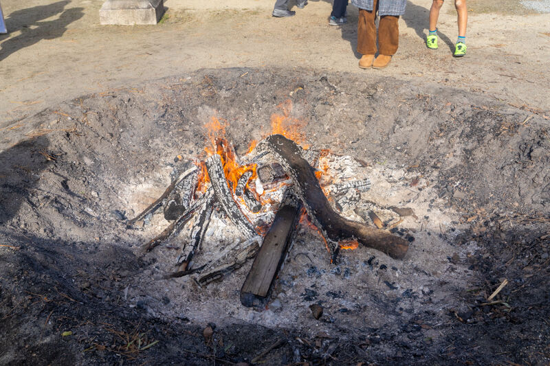 火を炊いていたので、暖を取る人も多々。