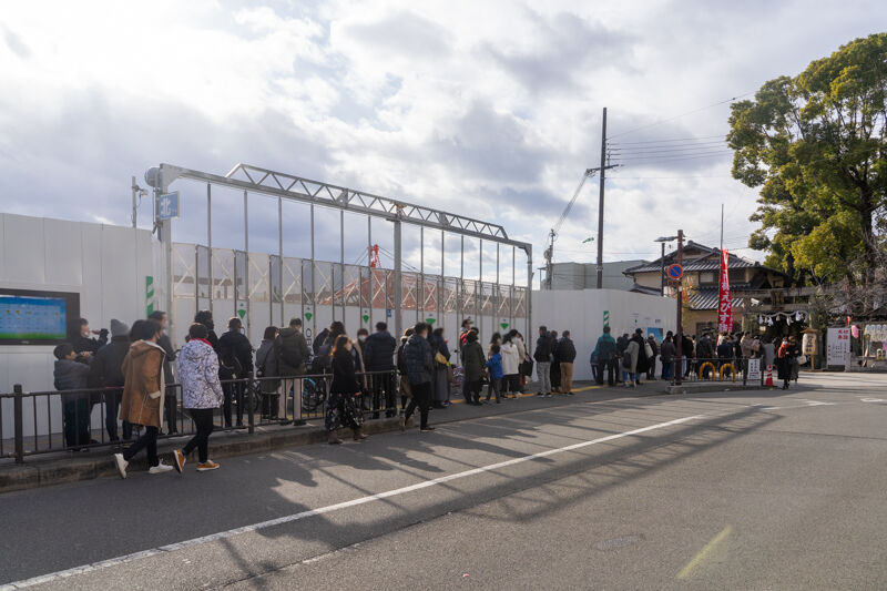 奥に見えてる建物は拝殿なので、さらに奥にある本殿まで行列ができているものだと思われます。