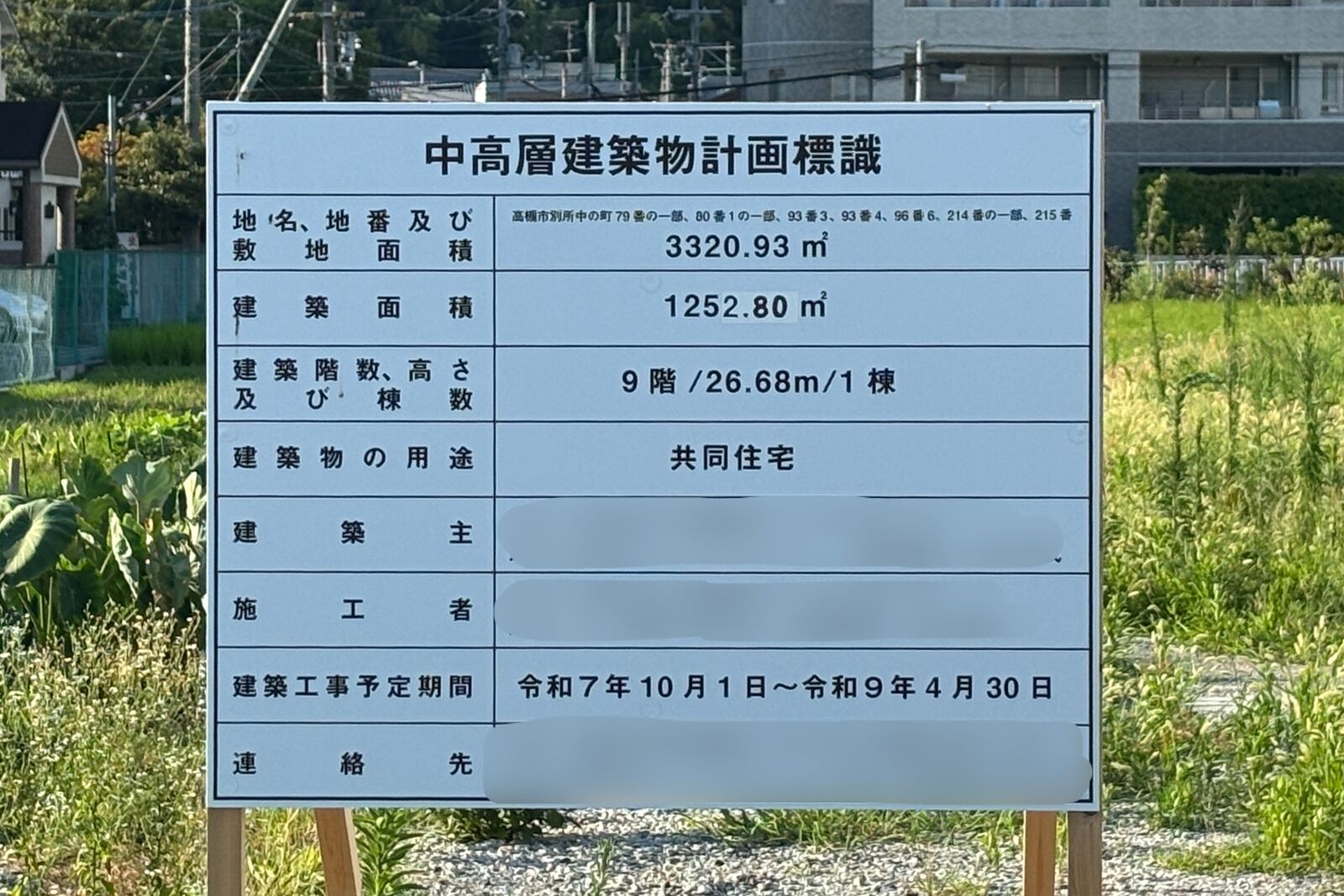 府道79号沿い別所中の町に9階建てマンションができるようです。