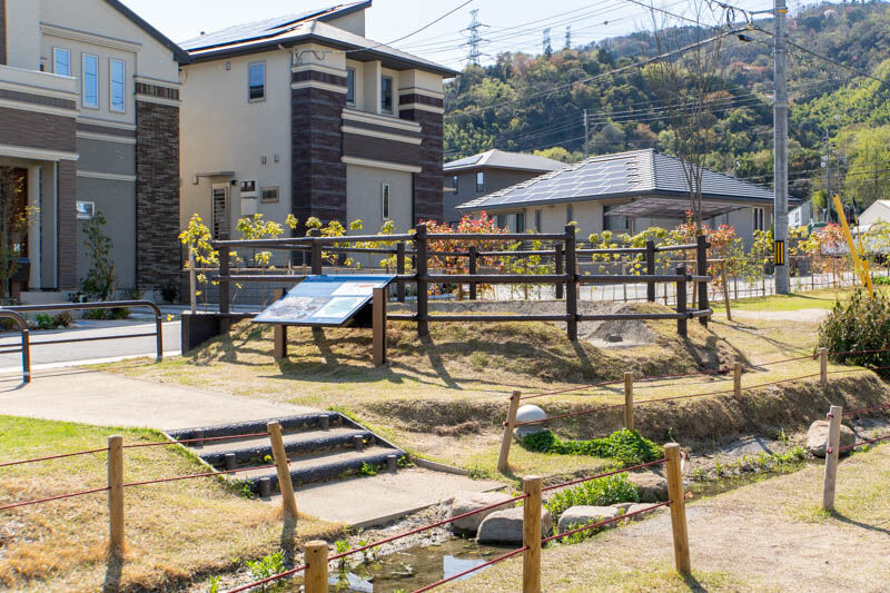 JR島本駅近くに鎌倉時代後半頃の泉跡が再現されています。
