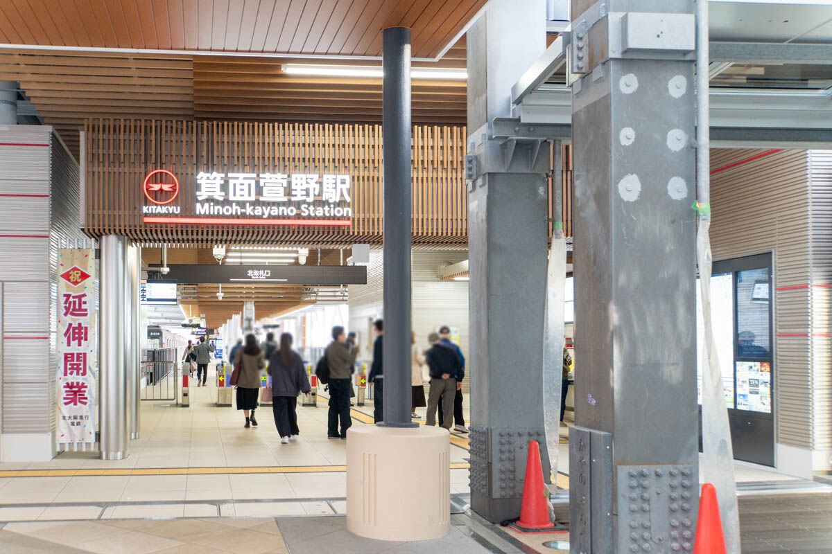 北改札口に向かうと、改札の向こうにはみのおキューズモールの看板が。