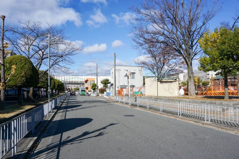 反対方向に行くと、スーパーマルヨシを横に進み府道14号線の高架下にあたります。右に行くとクイズにしたバローやドン・キホーテ、左に進むと芥川河川敷です。