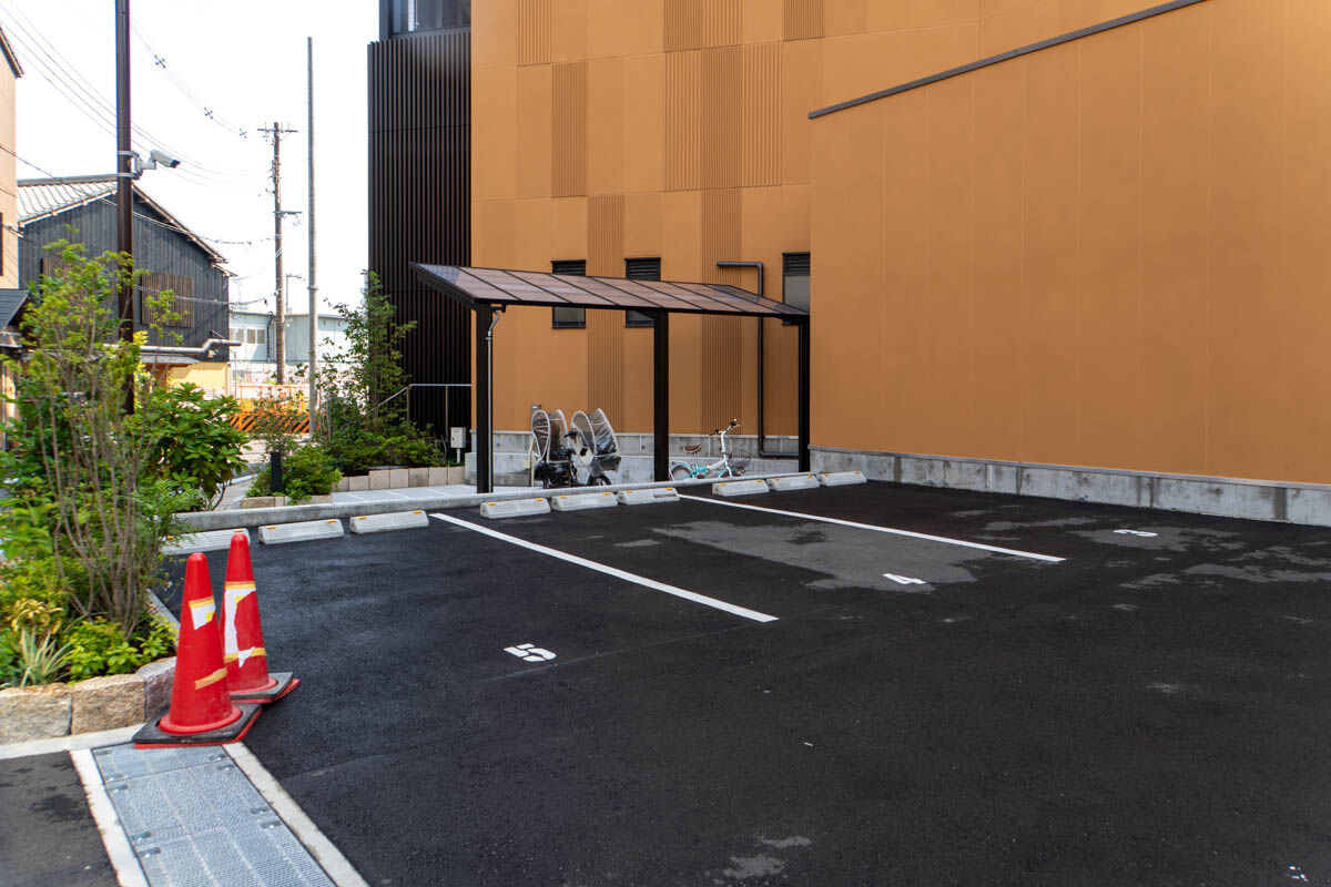 ビルの横には駐輪場と駐車場もありました。