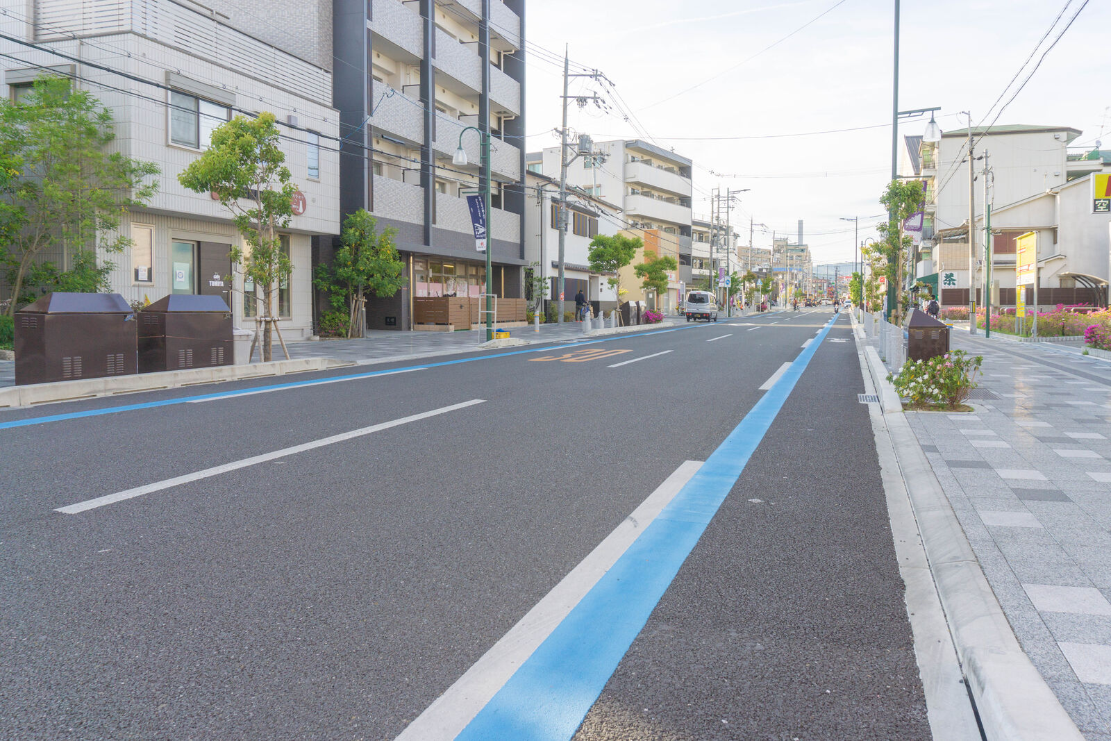 上記によると2018年から工事に着手し、歩道の整備や車止めの設置をして道路幅を9mから18mまで広げたようです。