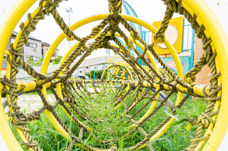 小さい子どもでも遊べそうな遊具にも、あみあみロープとトンネルもちゃんとあります。