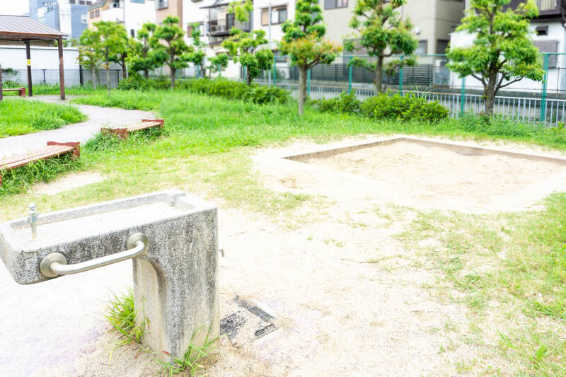 砂場の近くにはベンチ、水道もあるのですぐに手が洗える!
