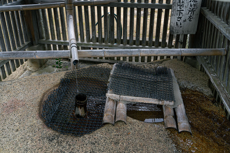 肝心の歴史ある手水鉢は、猫よけ対策みたいなマットがひかれていましたが、この下の岩部分が三重塔もしくは五重塔の塔心礎なるものに使われていた石なんだとか。そりゃ猫をよけたくなりますね。