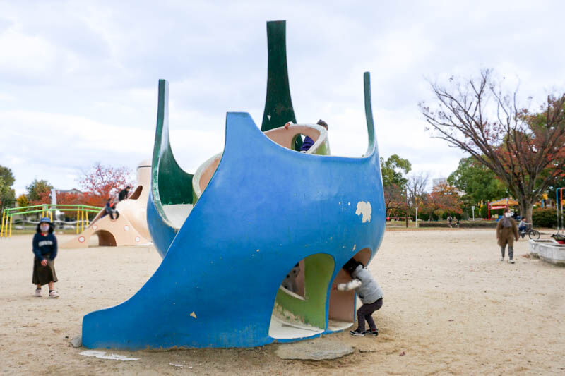 タコさん滑り台は公園の中央あたりにありますが、そこから少しだけ離れたところに別の大型遊具も。