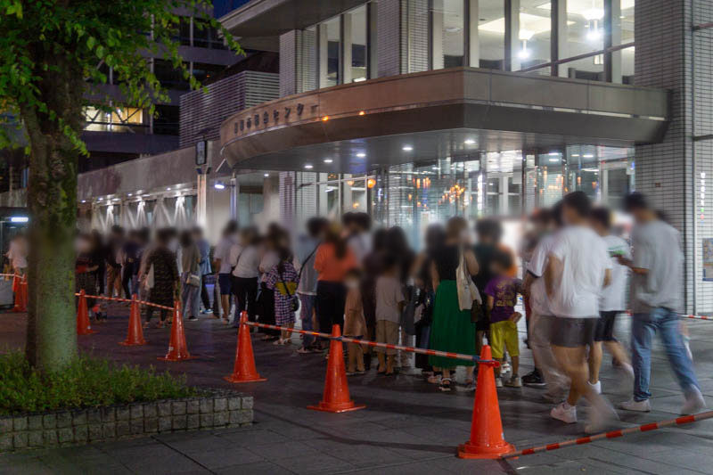 私リナティも何か食べたいな〜と思っていたんですが、アナウンスで「飲食エリアは3時間半待ちで、祭り終了までにエリアに入れるかわかりません」と流れ、飲食エリアは諦めました…。