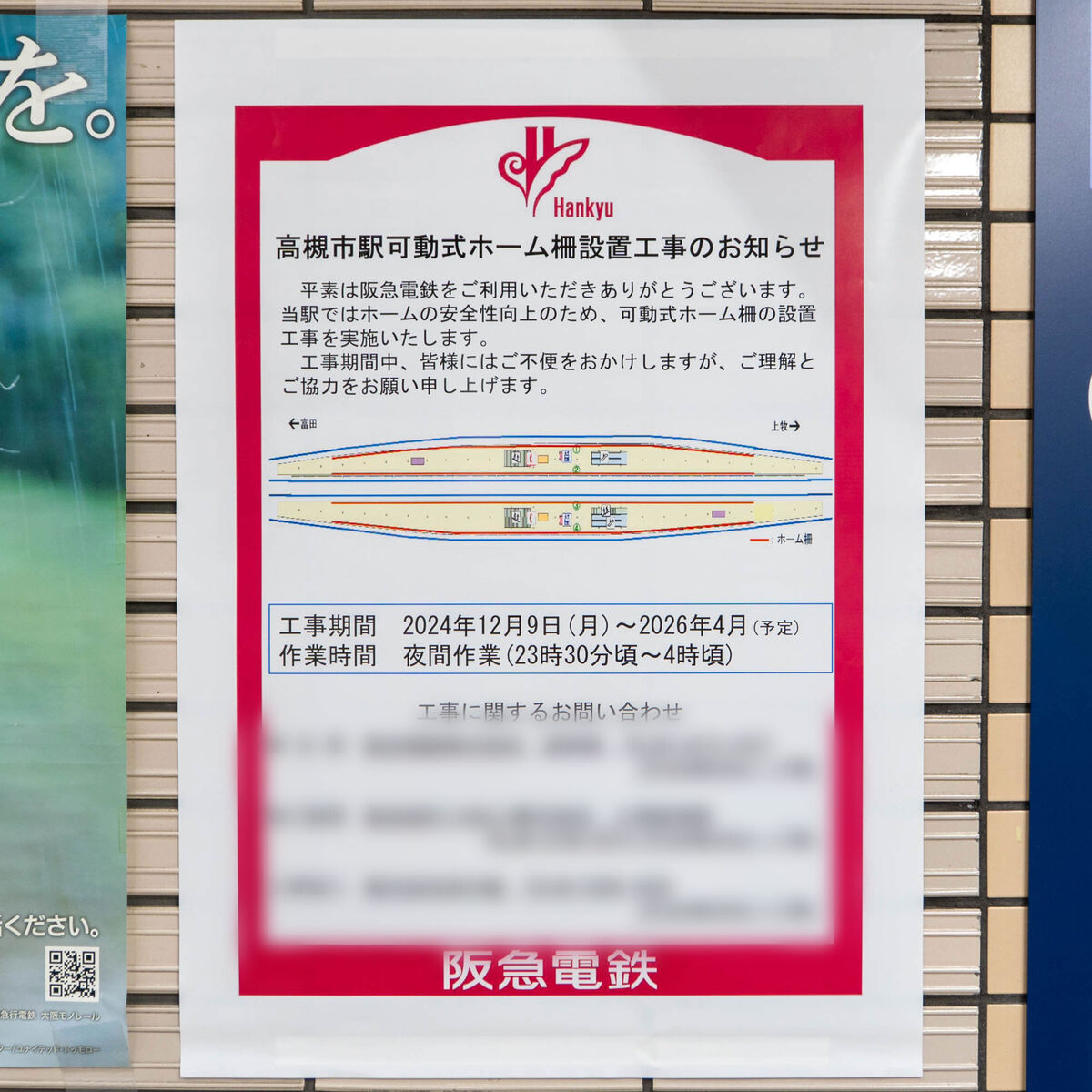 阪急高槻市駅に可動式ホーム柵が設置されるみたい。工事期間は12月9日〜2026年4月予定