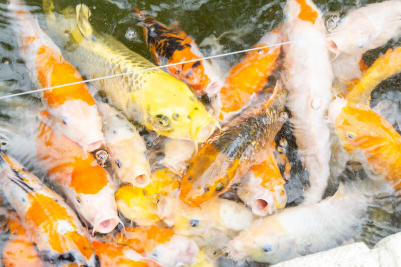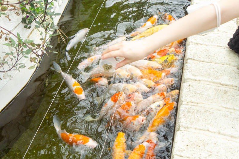 入口に鯉がいたので、エサやりをしてみました!