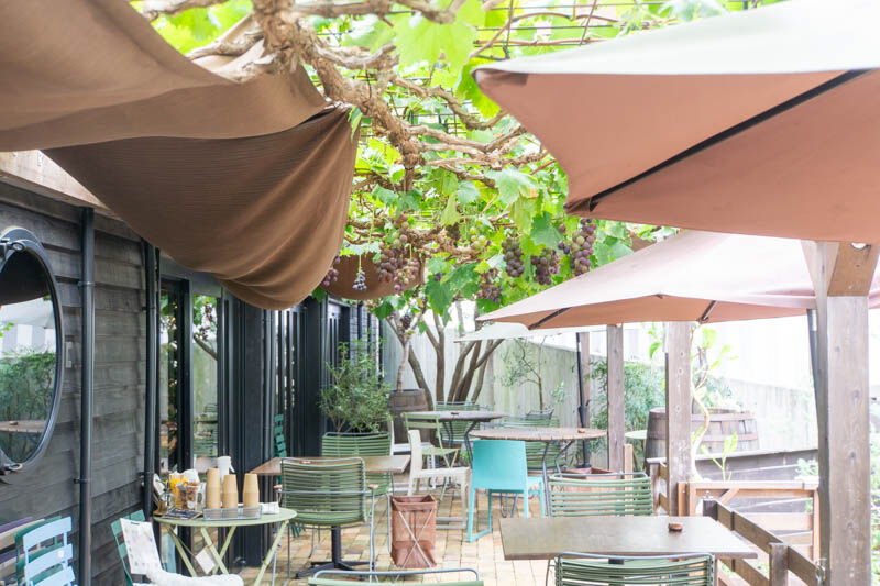 外のテラス席の屋根にはぶどうもたくさん!