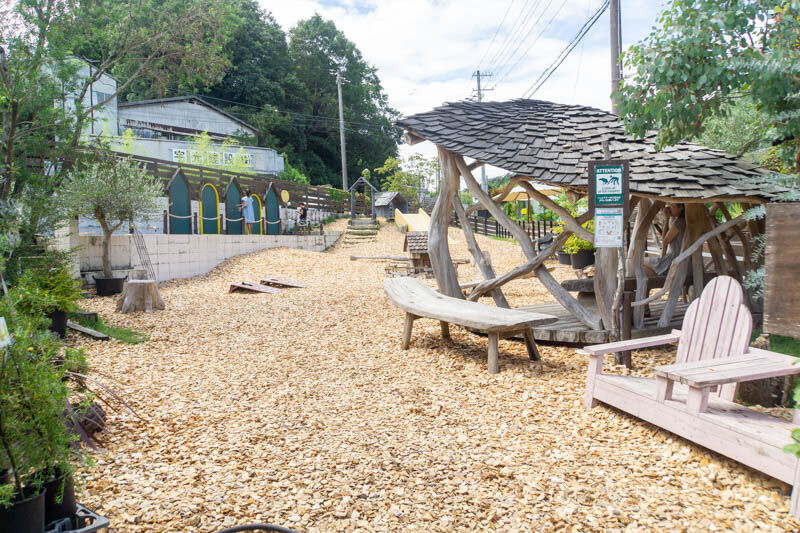 「おはなのもり」の道路を挟んだ向かいには、ハーブや果樹などの木が揃う『おにわのみどり』があります。