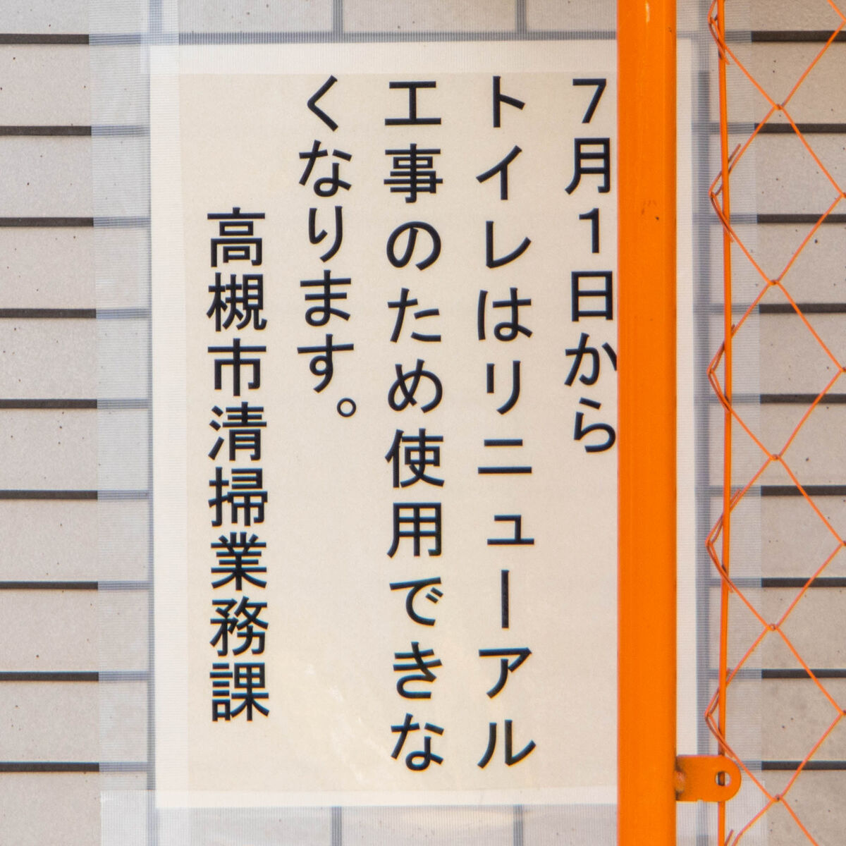 阪急高槻市駅前の公共トイレのリニューアル工事が始まっています。