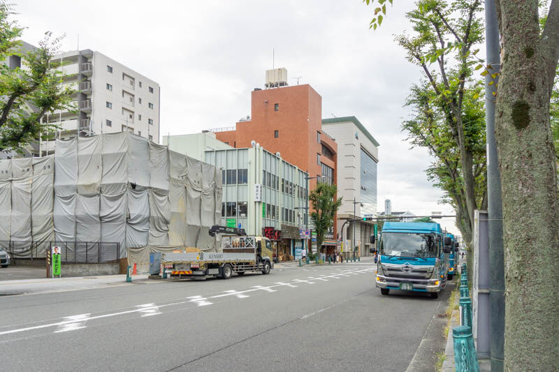 けやき大通りぞい城北町の桃園ビルの解体工事がはじまってる