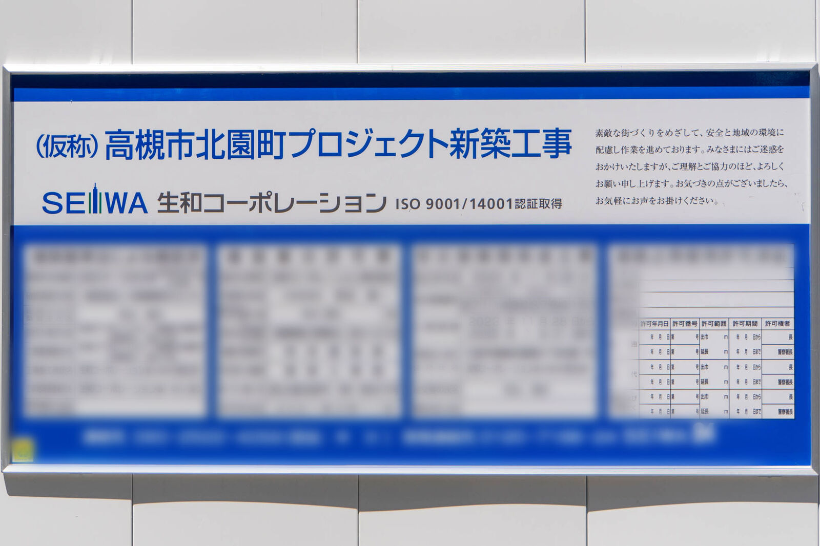 北園町につくってる10階建の店舗付マンション「(仮称)高槻市北園町プロジェクト」は2025年1月下旬竣工予定